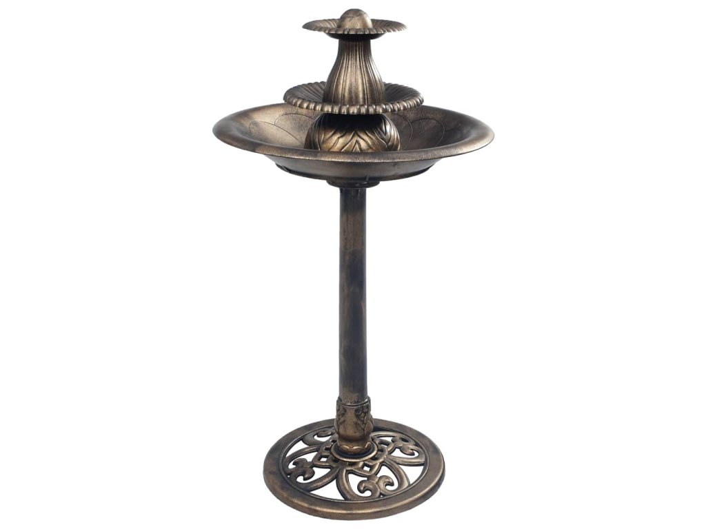Ptačí lázeň má několik úrovní a představuje prvotřídní ukázku elegance a klasického vzhledu. Má v sobě zabudované čerpadlo a ptáčku poskytne ideální místo, kde se ve vaší zahradě mohou za horkých letních dní svlažit a okoupat. Fontána pro ptáky je vyrobená z trvanlivého a klimaticky odolného plastu, můžete ji tedy venku používat celý rok.