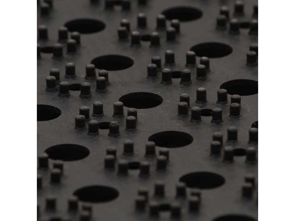 - Funkce odvodnění: Tato gumová rohožka je opatřena drenážními otvory, které pomáhají odvádět bláto a dešťovou vodu z bot. Navíc se snadno čistí – stačí ji opláchnout vodou!