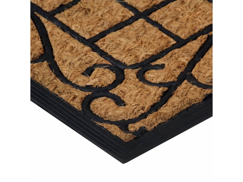 - Odolný a přírodní materiál: Tato rohožka je vyrobena z pružné pryže odolné proti opotřebení, která pohlcuje nárazy a zajišťuje dlouhou životnost a odolnost proti skvrnám. Přírodní kokosová vlákna na povrchu účinně absorbují a odstraňují špínu, bláto a další nečistoty z bot a pomáhají tak udržovat podlahy čisté.