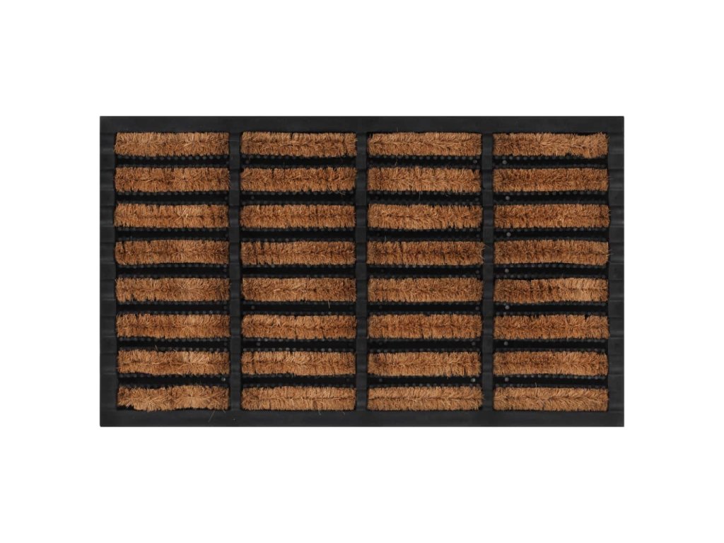- Odolný a přírodní materiál: Tato rohožka je vyrobena z pružné pryže odolné proti opotřebení, která pohlcuje nárazy a zajišťuje dlouhou životnost a odolnost proti skvrnám. Přírodní kokosová vlákna na povrchu účinně absorbují a odstraňují špínu, bláto a další nečistoty z bot a pomáhají tak udržovat podlahy čisté.