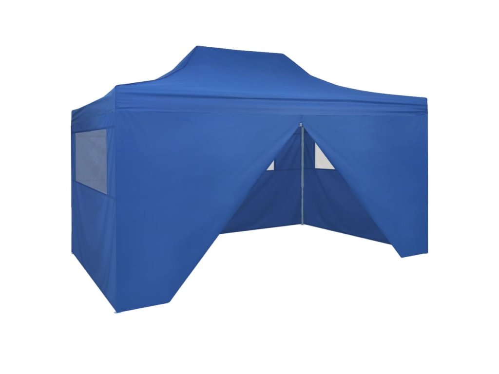 vidaXL Rozkládací stan nůžkový se 4 bočními stěnami 3 x 4,5 m modrý