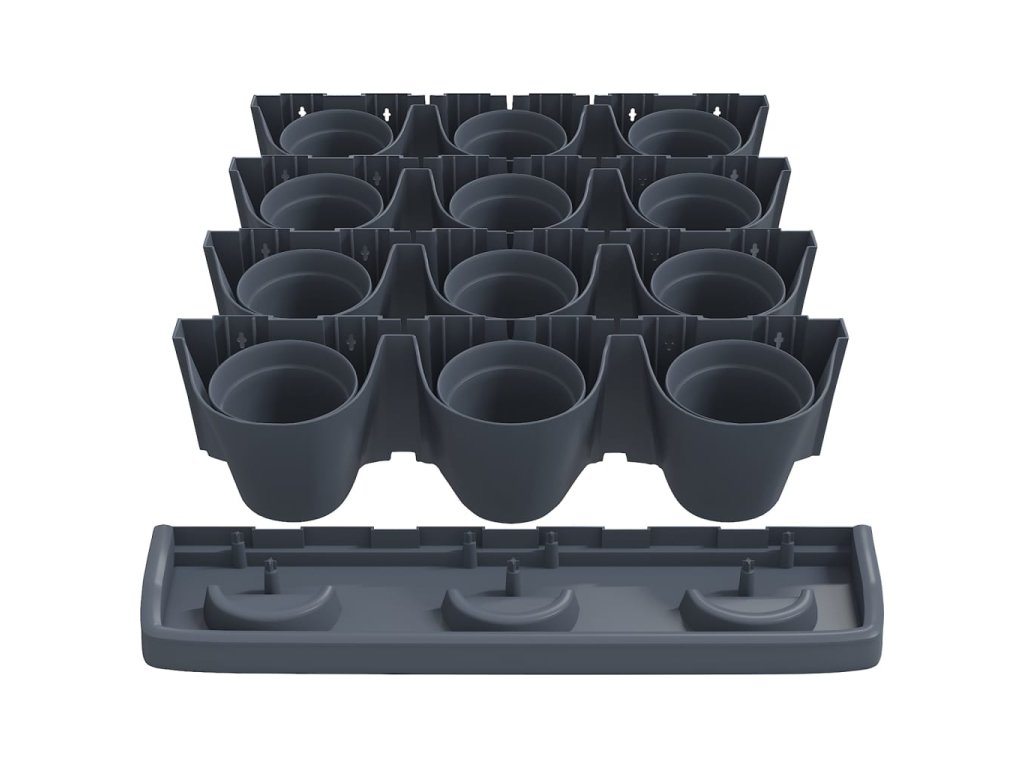 - Vícenásobné uspořádání: Zahradní truhlík je navržen tak, aby se dal uspořádat podle vašich představ a dokázali jste tak vytvořit velkolepé zelené stěny nebo barevné dekorace.