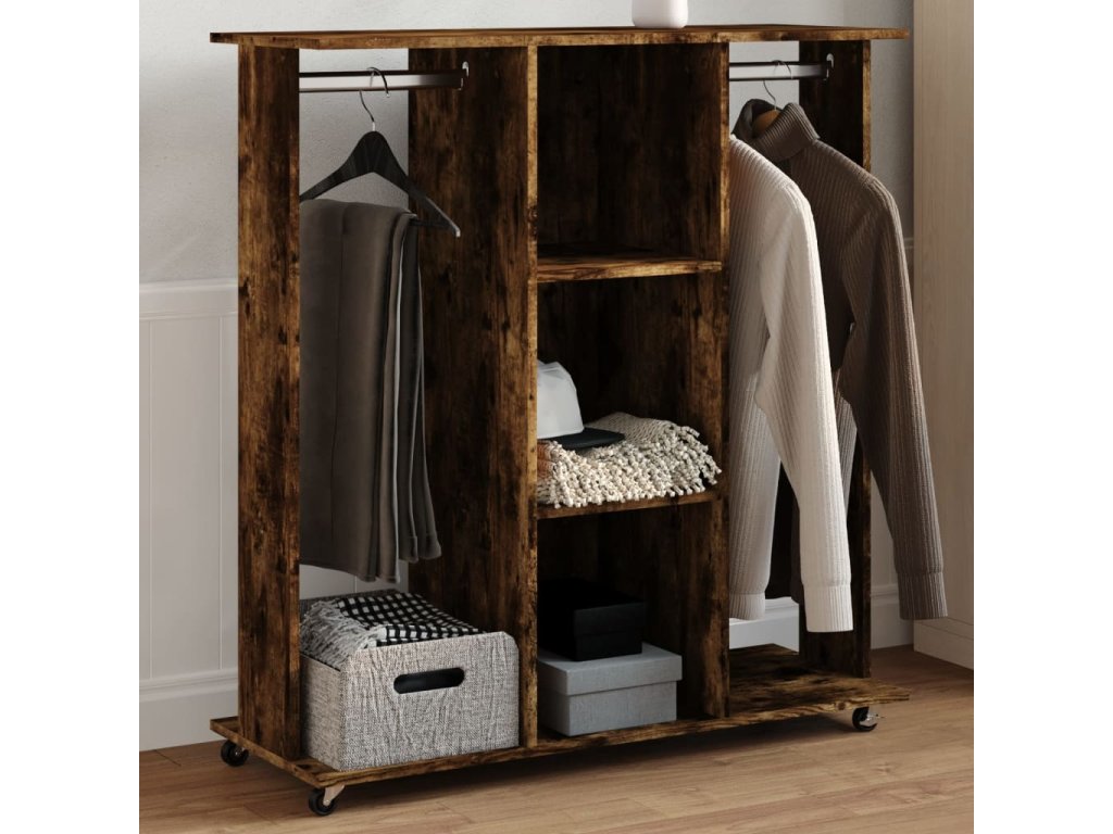 vidaXL Šatní skříň na kolečkách kouřový dub 102 x 38 x 110 cm kompozit