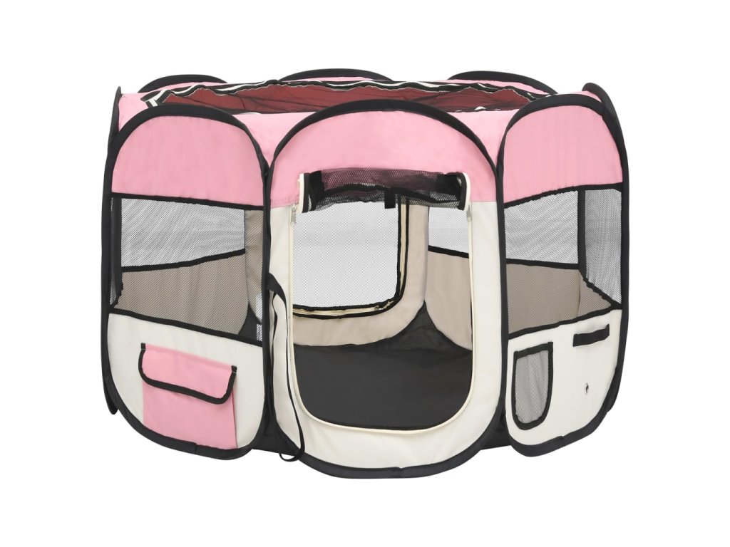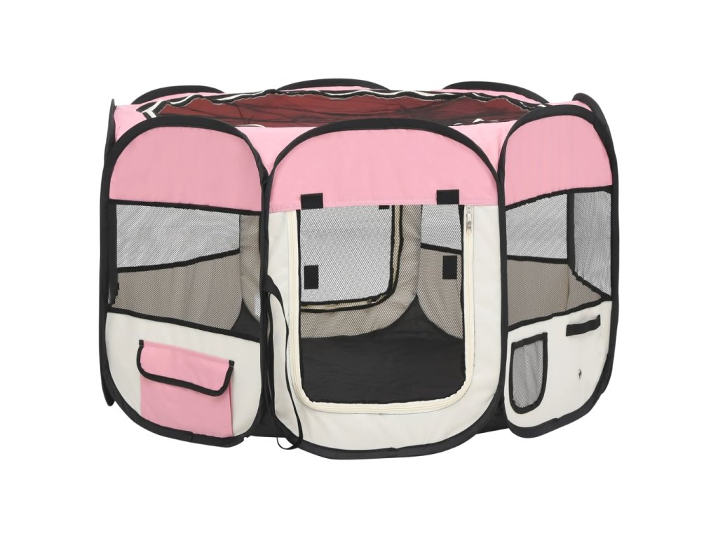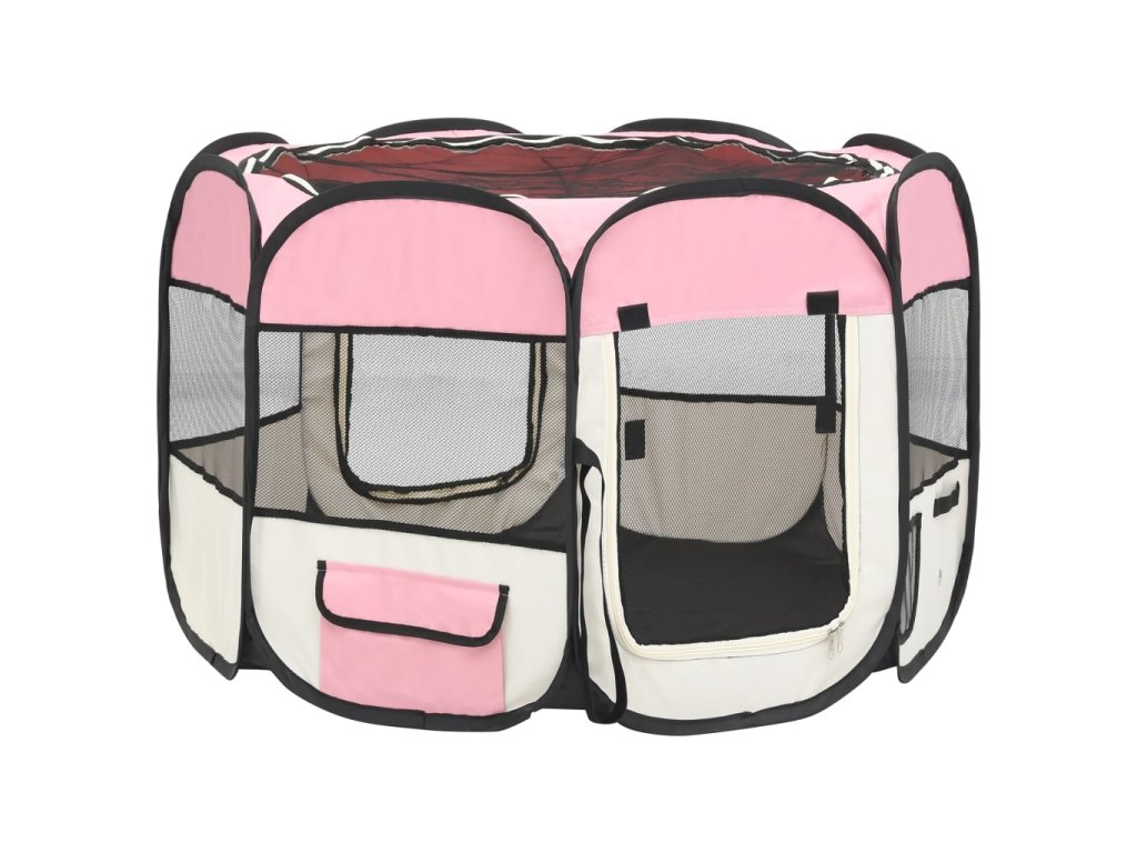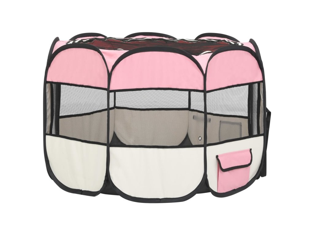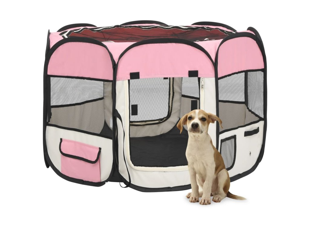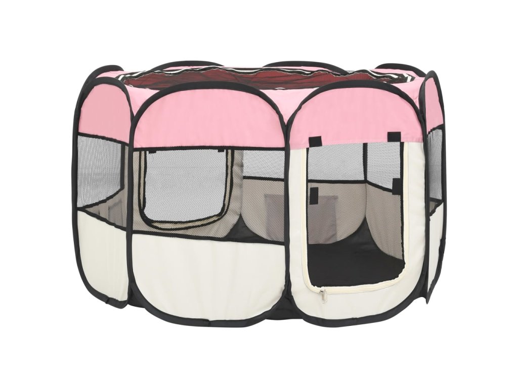 vidaXL Skládací ohrádka pro psy s taškou růžová 90 x 90 x 58 cm