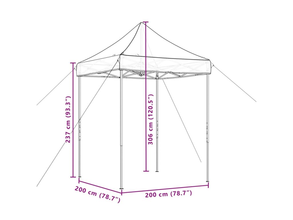 - Skládací a rozkládací konstrukce: Díky rozkládací konstrukci můžete stan snadno postavit a složit během několika sekund. Altán je skládací pro snadné skladování a přepravu.