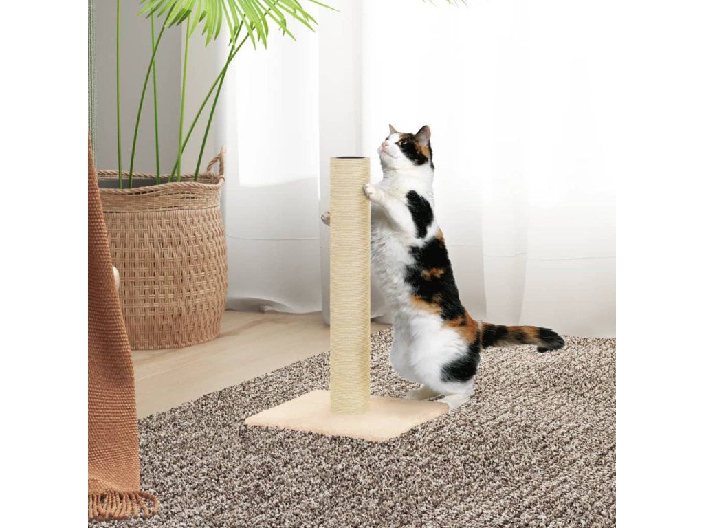 - Sloupek z přírodního sisalu: Odolné a pevné sloupky s přírodním sisalem tohoto škrabadla dokonale uspokojí škrabací instinkt koček a zabrání jim poškrábat váš nábytek.