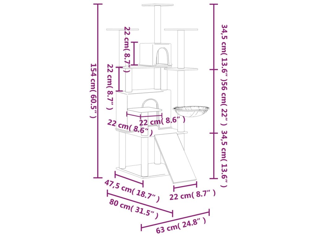 - Všestranná věž pro kočky: Víceúrovňový nábytek pro kočky je navržen se 2 domečky, 1 hamakou, 1 žebříkem a plošinami, které poskytují kočkám ideální místo pro šplhání, sezení, škrábání, schovávání se a také k odpočinku.