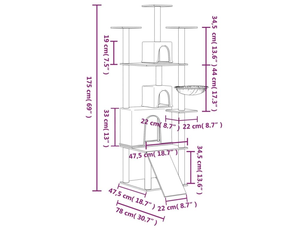 - Všestranná věž pro kočky: Víceúrovňový nábytek pro kočky je navržen se 3 domečky, 1 hamakou, 1 žebříkem a plošinami, které poskytují kočkám ideální místo pro šplhání, sezení, škrábání, schovávání se a také k odpočinku.
