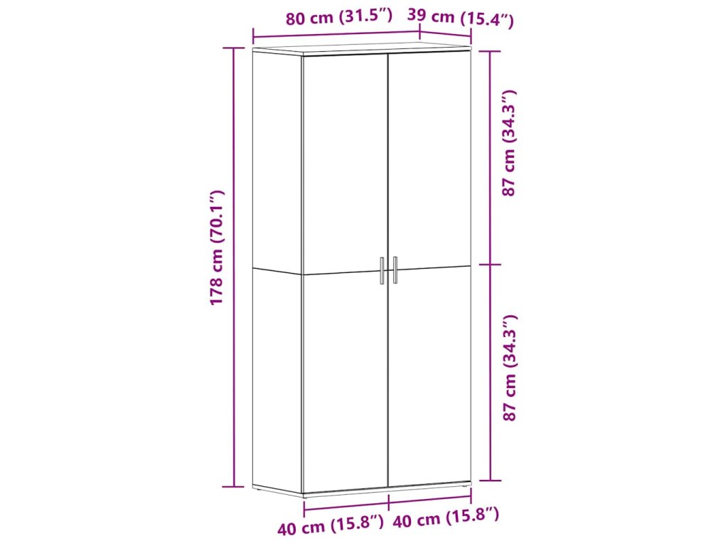 - Celkové rozměry: 80 x 39 x 180 cm (D x Š x V)