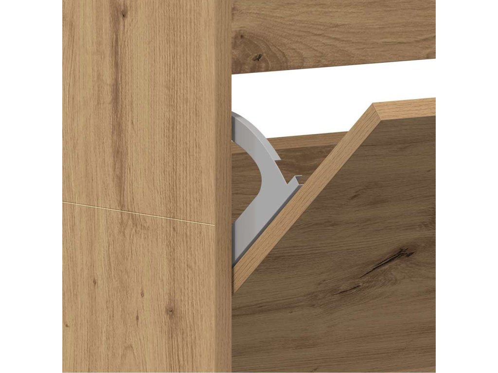 - Struktura z inženýrského dřeva Skříň z kvalitního inženýrského dřeva má pevný a stabilní rám. Texturovaný vzhled jí dodává moderní šarm a zajišťuje dlouhou životnost pro každodenní používání bez ztráty kouzla.