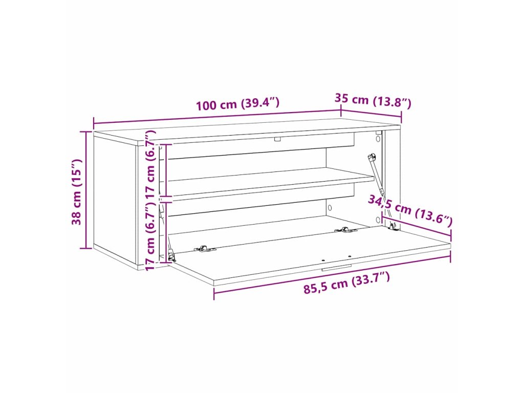 - Celkové rozměry: 100 x 35 x 38 cm (D x Š x V)