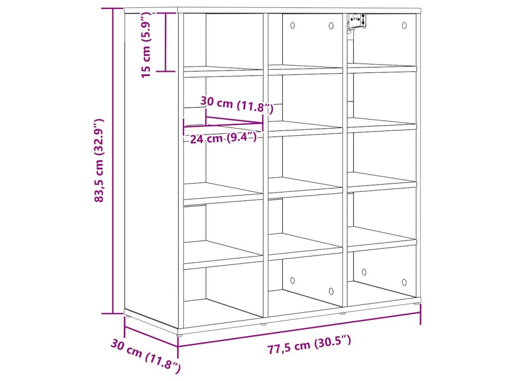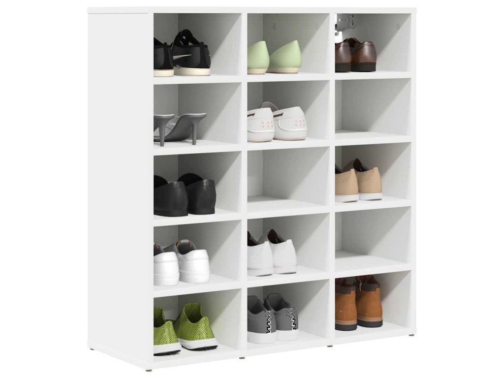 - Odolný materiál: Tahle skříň na boty je vyrobená z kompozitního dřeva, které je odolné a snese každodenní používání, zatímco si drží svůj elegantní vzhled. Tento robustní materiál je trvalým řešením pro uložení bot ve vaší chodbě.