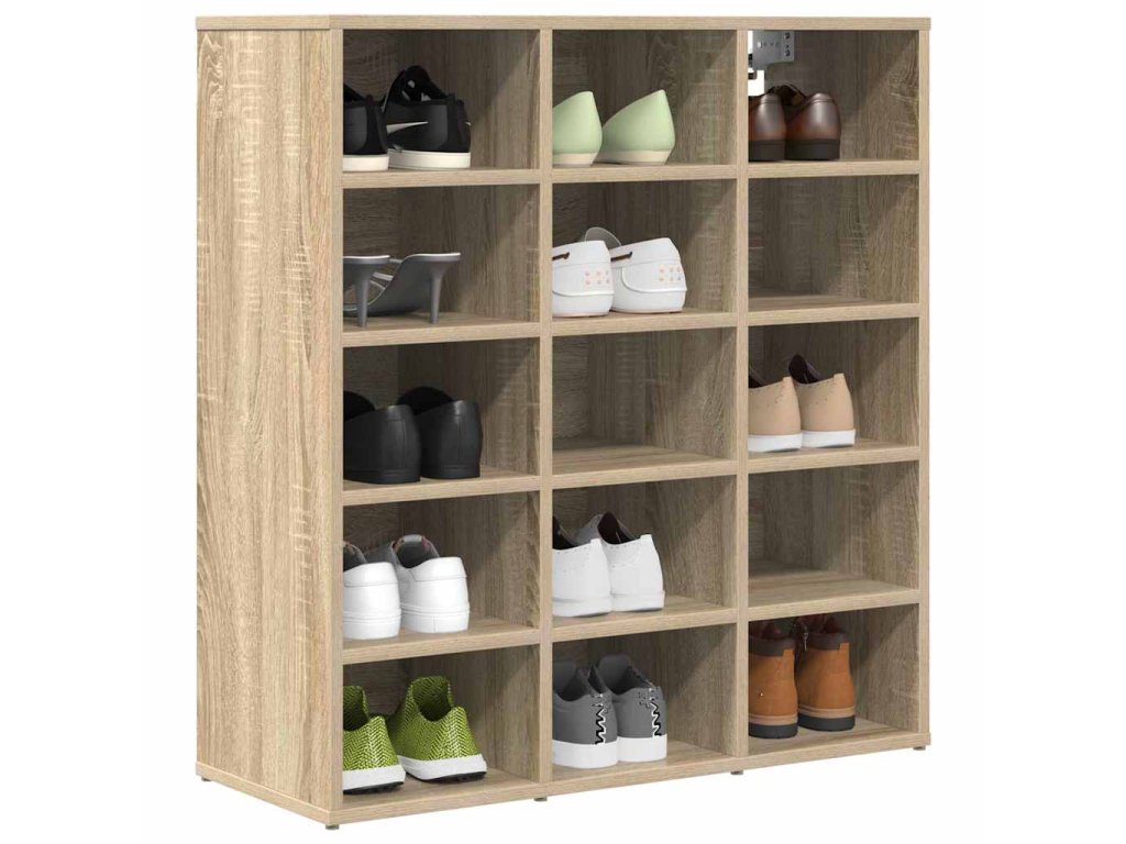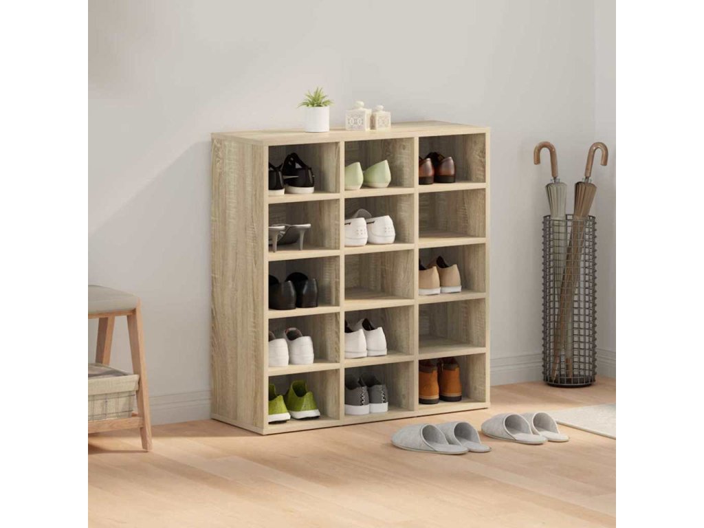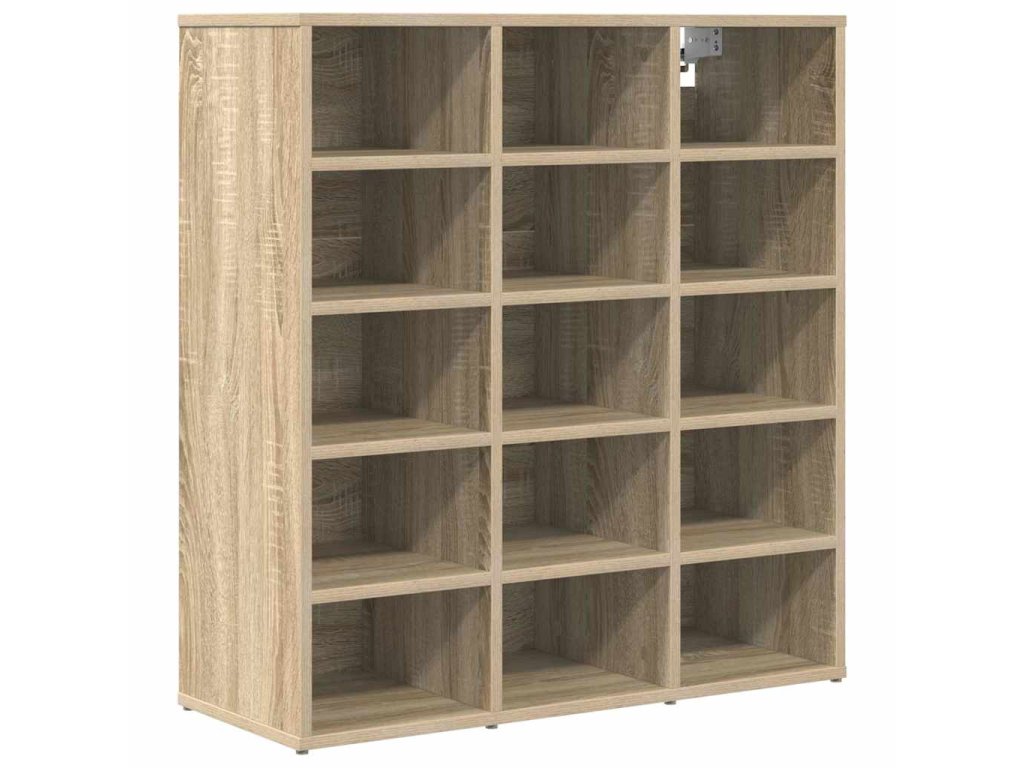 - Odolný materiál: Tahle skříň na boty je vyrobená z kompozitního dřeva, které je odolné a snese každodenní používání, zatímco si drží svůj elegantní vzhled. Tento robustní materiál je trvalým řešením pro uložení bot ve vaší chodbě.
