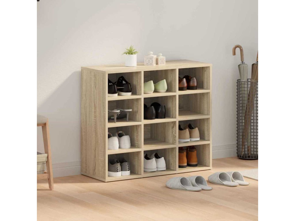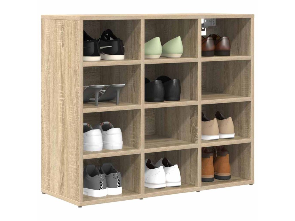 - Odolný materiál: Tahle skříň na boty je vyrobená z kompozitního dřeva, které je odolné a snese každodenní používání, zatímco si drží svůj elegantní vzhled. Tento robustní materiál je trvalým řešením pro uložení bot ve vaší chodbě.