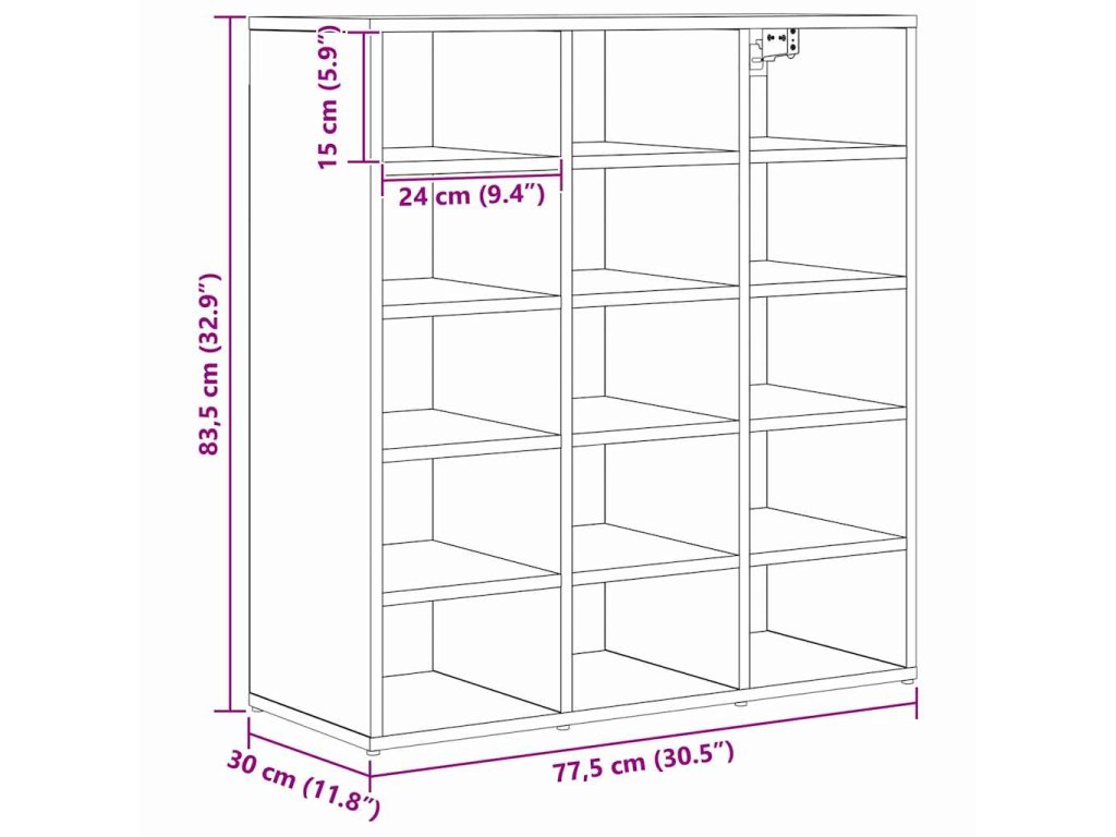 - Odolný materiál: Tahle skříň na boty je vyrobená z kompozitního dřeva, které je odolné a snese každodenní používání, zatímco si drží svůj elegantní vzhled. Tento robustní materiál je trvalým řešením pro uložení bot ve vaší chodbě.