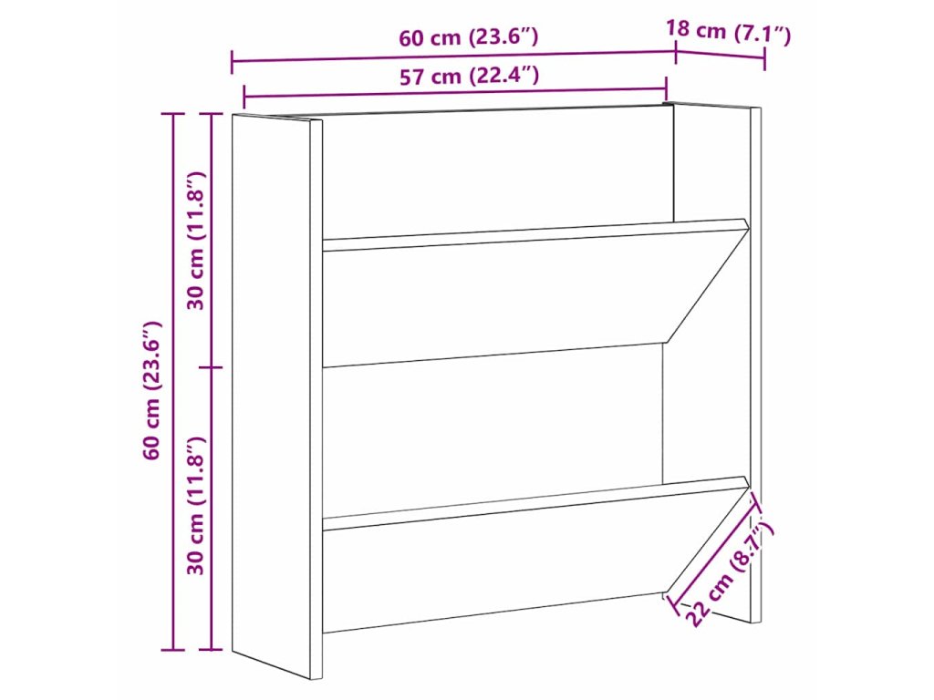 Tahle elegantní nástěnná skříň na boty spojuje moderní design a praktičnost, takže je perfektní pro uložení obuvi. Ideální do kompaktních prostor jako předsíně, díky níž zapadne do každého interiéru, aniž byste museli slevit na kvalitě. Je ideální pro ty, co chtějí mít boty snadno přístupné na přehledném místě a dodá každé místnosti elegantní vzhled.
