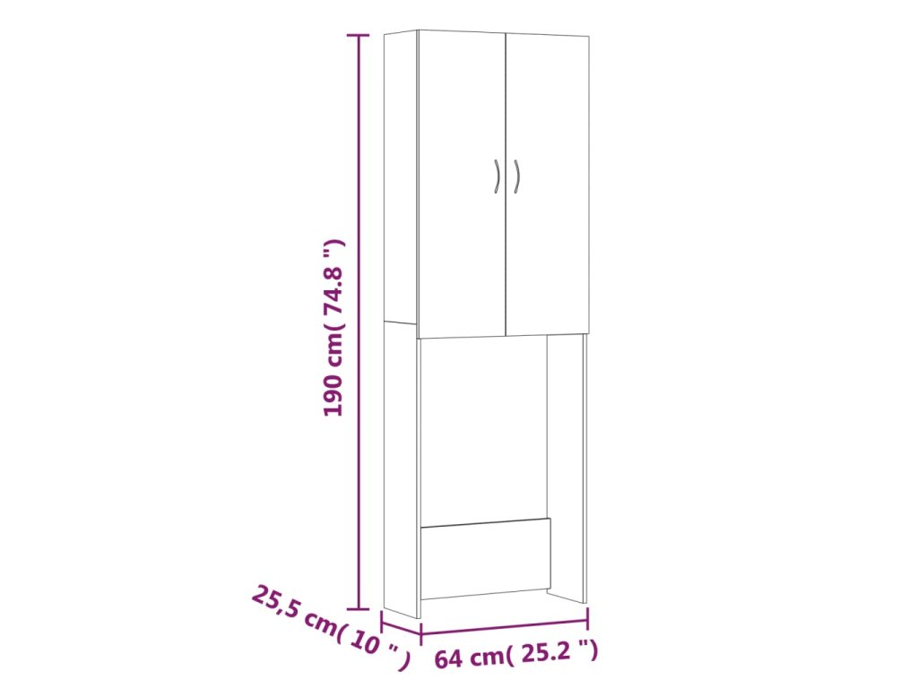 vidaXL Skříňka nad pračku černá 64 x 25,5 x 190 cm