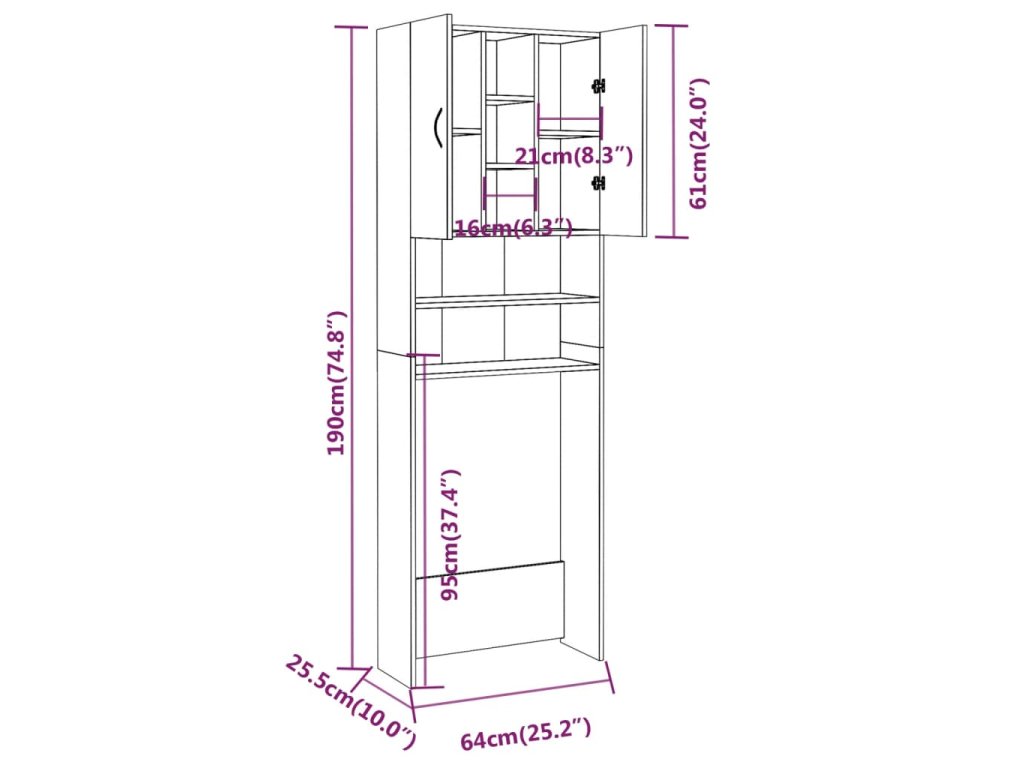 - Rozměry: 64 x 25,5 x 190 cm (Š x H x V)