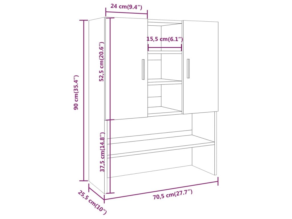 - Rozměry: 70,5 x 25,5 x 90 cm (Š x H x V)