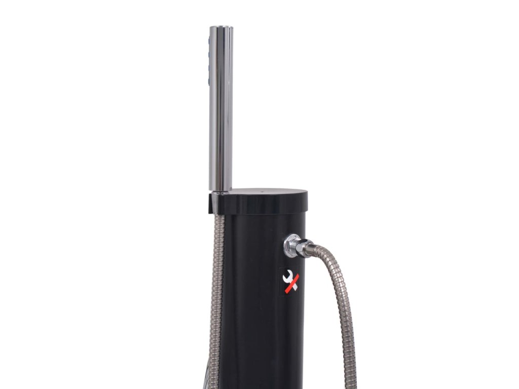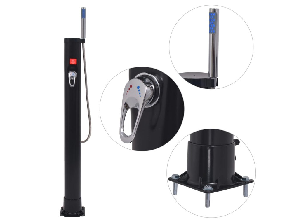 Solární sprcha se snadno používá. Regulovat teplotu vody můžete snadno pouze otočením páčky. Solární sprcha je opatřena ruční sprchovou hlavicí a flexibilní hadicí. Pomocí vysoce kvalitní ocelové základny a přiloženého ukotvení do země se dá sprcha snadno připevnit k zemi.
