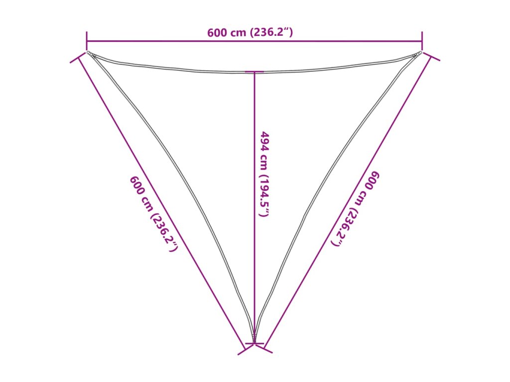 Sluneční plachta vyrobená ze 100% HDPE (vysokohustotní polyethylen) vás chrání před přímým slunečním zářením, umožňuje dostatečný průchod vzduchu a je propustná pro vodu. HDPE je speciálně upraven, takže je odolný proti plísním a UV záření. Slunečník se snadno sestavuje pomocí nerezových upevňovacích prvků na každém rohu a přiložených lanek.