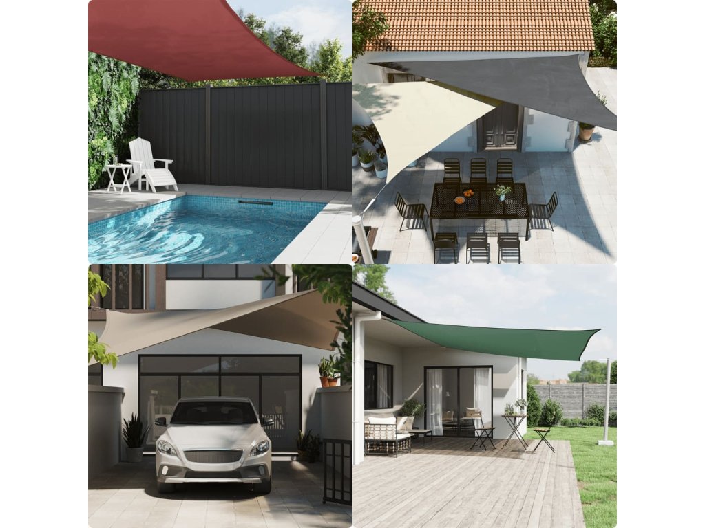 - Snadné použití: Stínicí plachta je v každém rohu opatřena odolnými antikorozními D-kroužky. Můžete ji snadno zajistit pomocí lan nebo upevňovacích sad.
