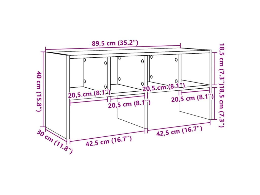 - Rozměry: 89,5 x 30 x 40 cm (Š x H x V)