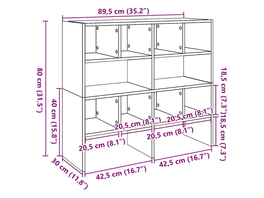 - Rozměry (každý kus): 89,5 x 30 x 40 cm (Š x H x V)