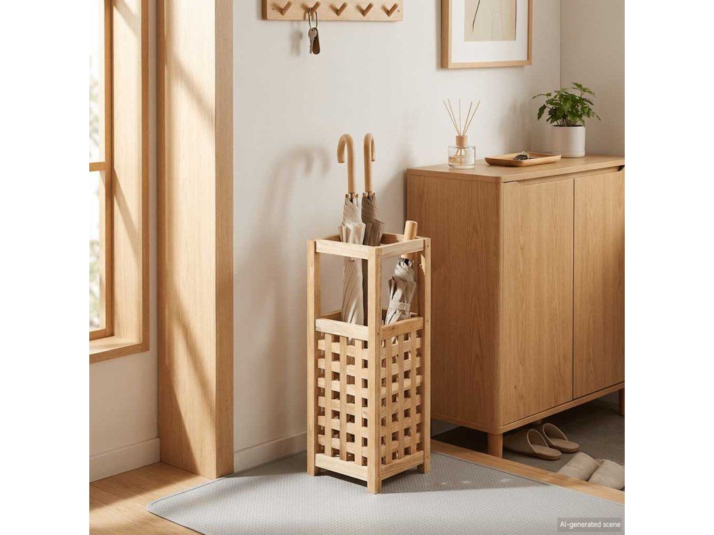 Náš dřevěný stojan na deštníky představuje úhledné úložné řešení pro vaše deštníky a dodá vaší domácnosti přírodní nádech.