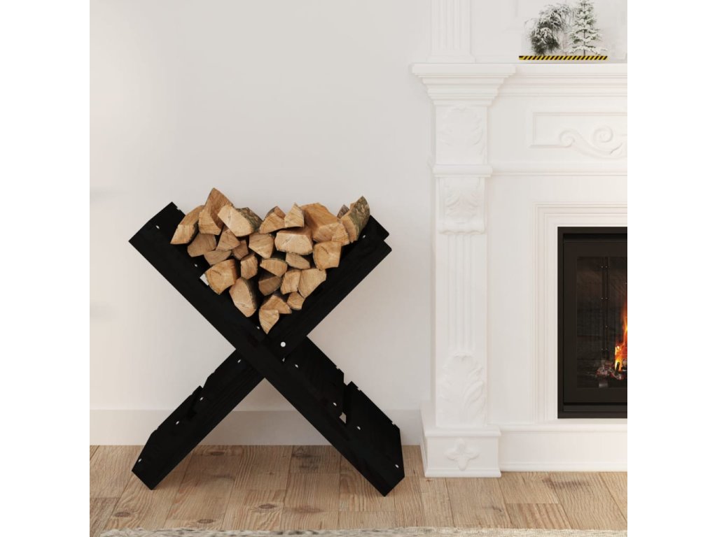 vidaXL Stojan na dřevo černá 47 x 39,5 x 48 cm masivní borovice