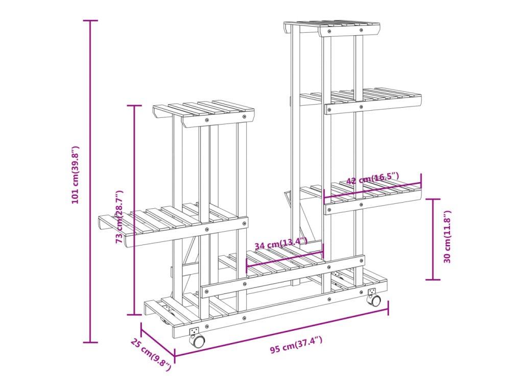 - Odolné jedlové dřevo: Tento stojan na rostliny je vyroben z jedlového dřeva, které je robustní a odolné a zaručuje dlouholetou službu. Kromě toho má tento dřevěný stojan na květiny díky pečlivému řemeslnému zpracování s použitím karbonizace vynikající odolnost proti vlhkosti a povětrnostním vlivům.