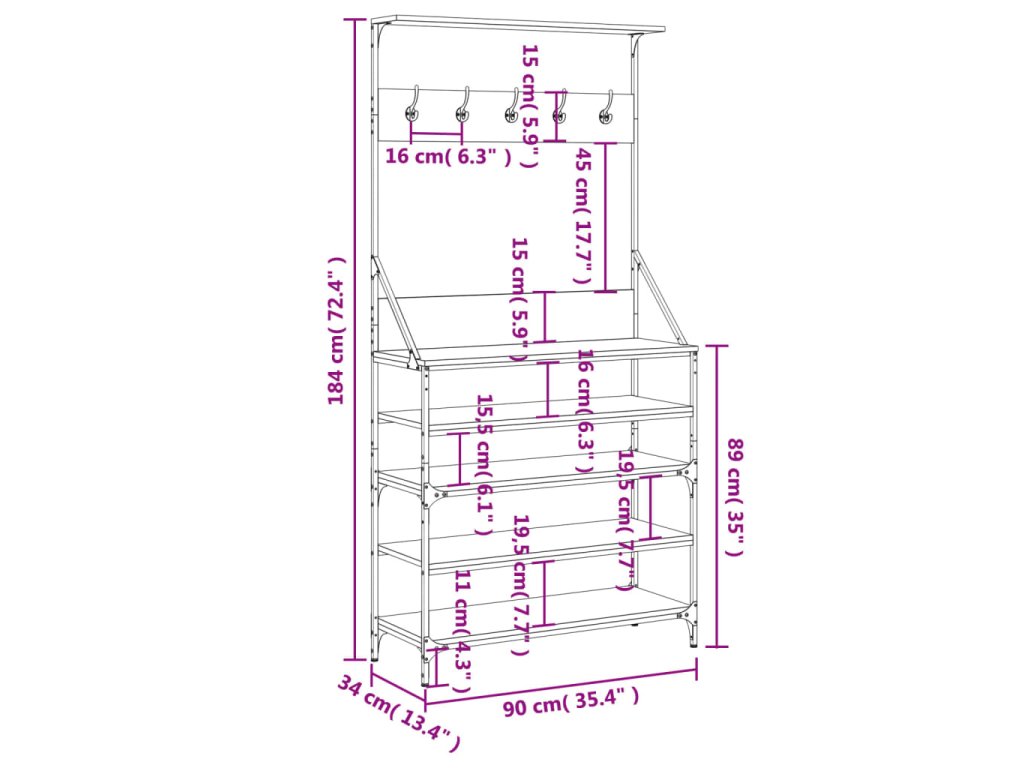 - Dostatek úložného prostoru: Stojan na kabáty nabízí dostatek úložného prostoru pro přehledné uložení oblečení a kabelek. Spodní police se dokonale hodí pro obuv.