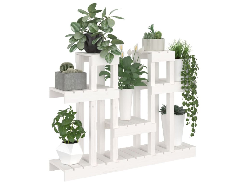 vidaXL Stojan na rostliny bílý 104,5x25x77,5 cm masivní borové dřevo