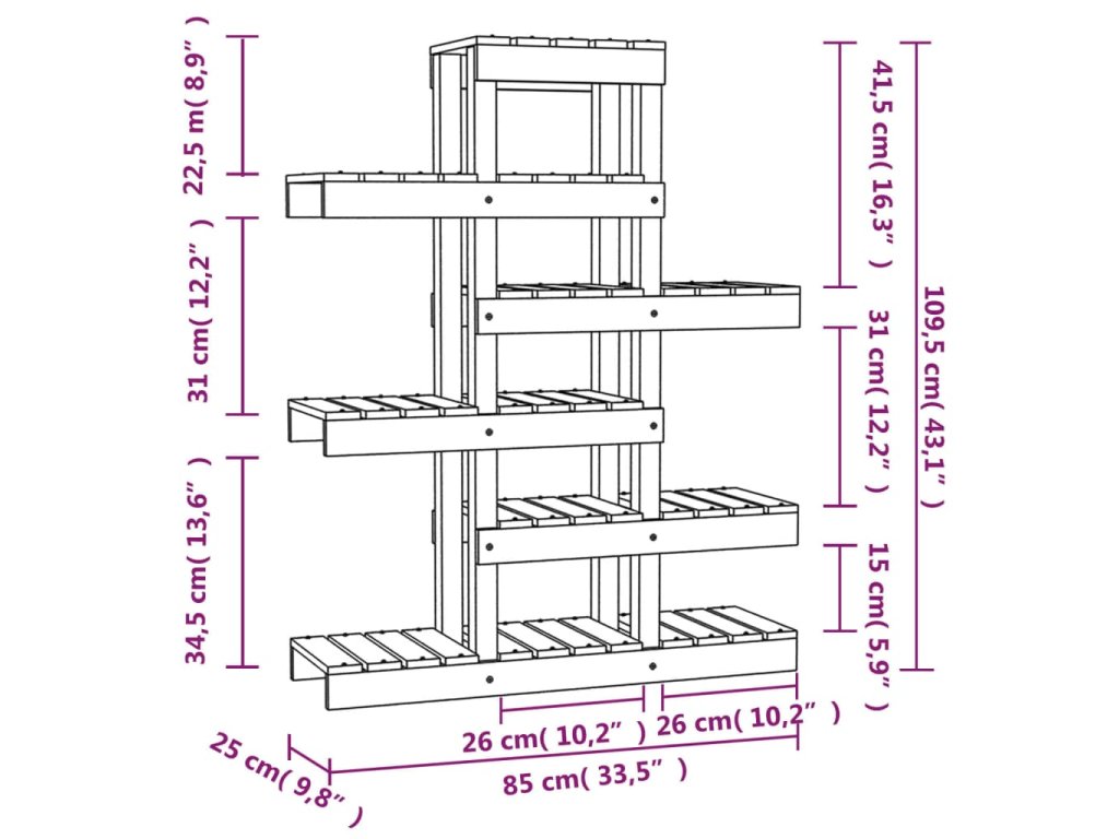 vidaXL Stojan na rostliny medově hnědý 85x25x109,5 cm masiv borovice