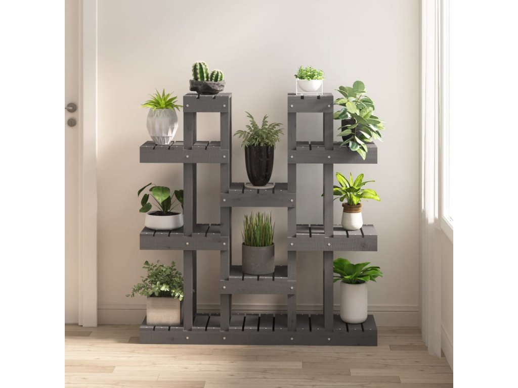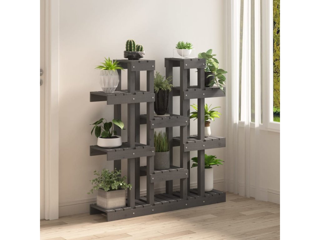 vidaXL Stojan na rostliny šedý 104,5x25x109,5 cm masivní borové dřevo