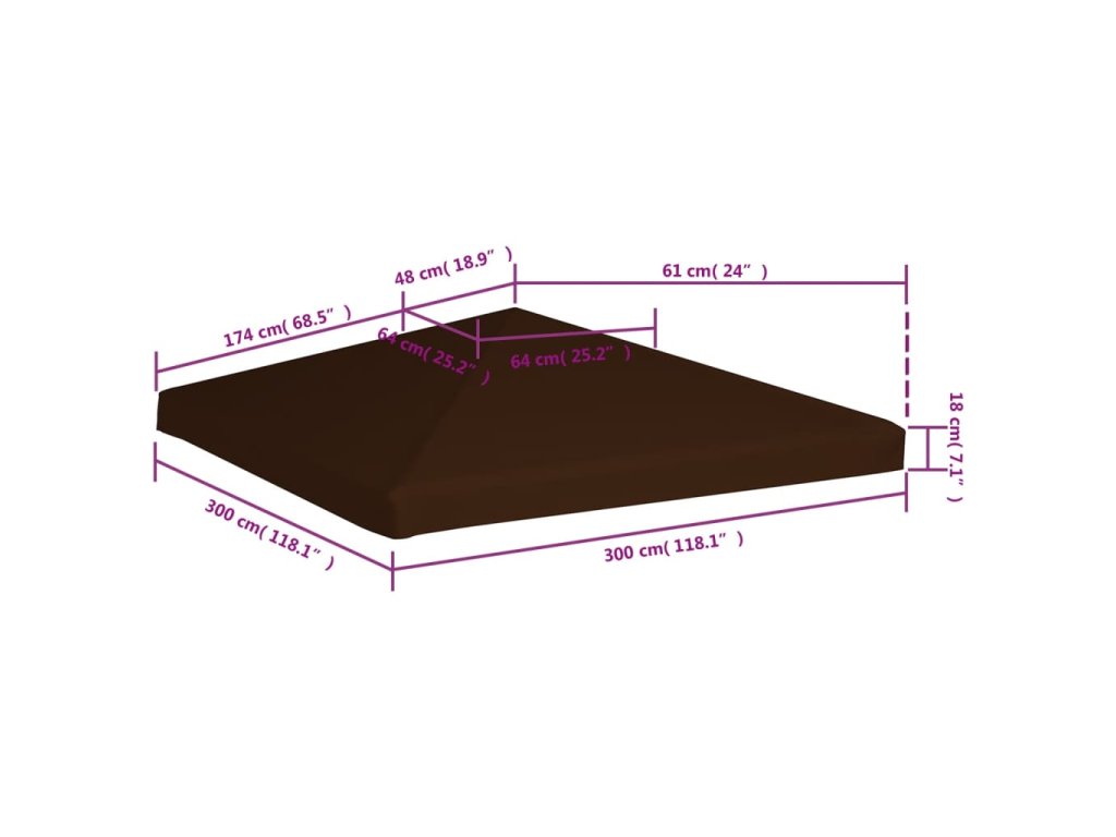 vidaXL Střecha na altán 310 g/m2 3 x 3 m hnědá