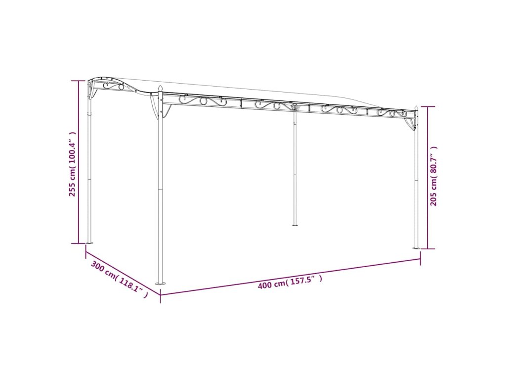- Stabilní rám: Práškově lakovaný ocelový rám zajišťuje robustnost a stabilitu altánu.