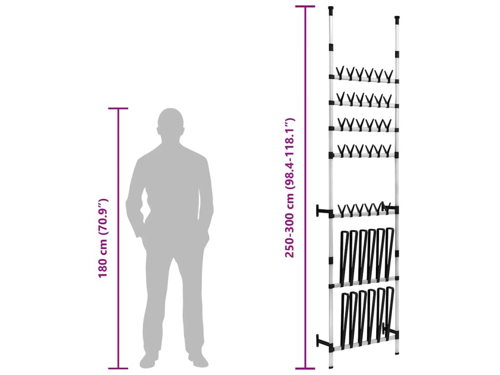 Teleskopický botník je vyrobený z hliníku, takže je odolný a robustní. Tento úložný regál s teleskopickým systémem lze výškově nastavit a přizpůsobit prostoru a vašim požadavkům. Nabízí jedinečný a důmyslný způsob jak si zorganizovat vaši obuv a zároveň ušetřit místo.