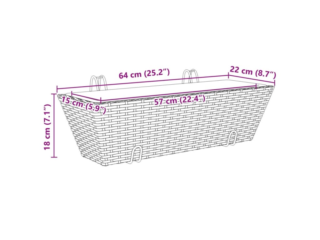 - Rozměry plastového květináče: 57 x 15 x 16,5 cm (Š x H x V)