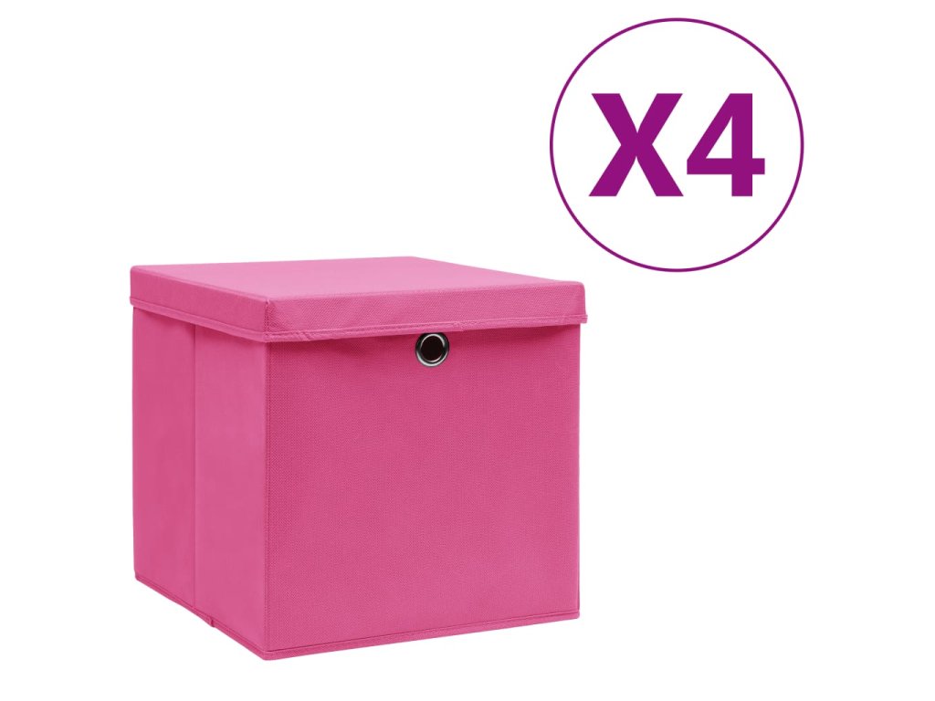 vidaXL Úložné boxy s víky 4 ks 28 x 28 x 28 cm růžové