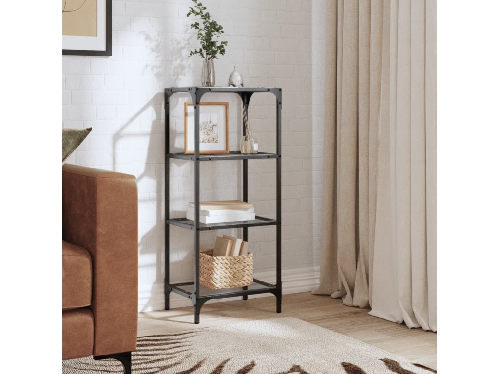 vidaXL Úložný regál s průhlednou skleněnou deskou 40x30x195 cm ocel