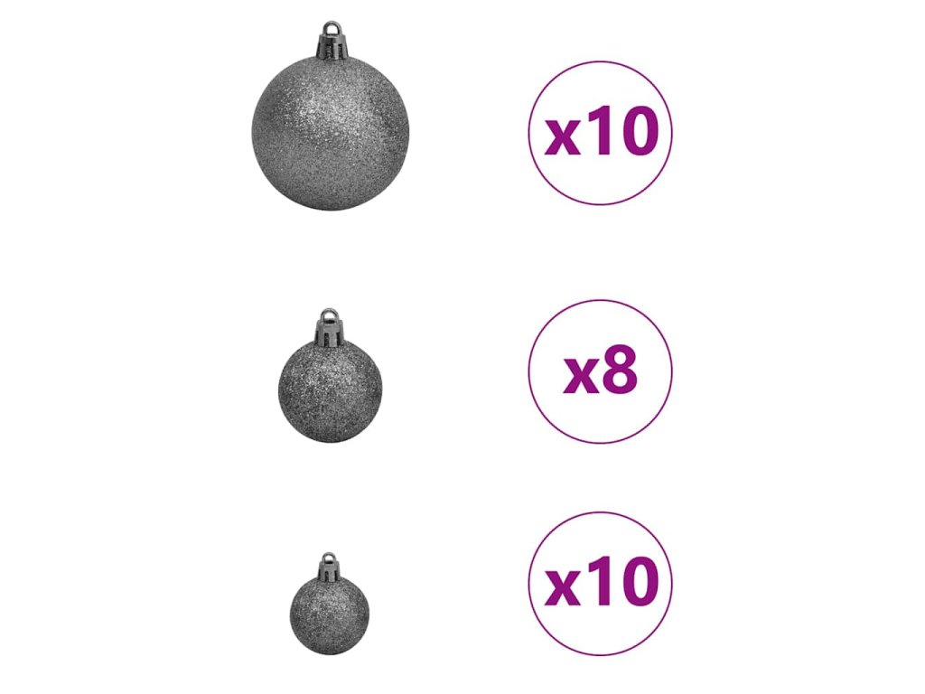 - 1xvánočnístrom,1xLEDsvětelnýřetěz,1xšpička,40x6cmkoule,40x4cmkoule,40x3cmkoule