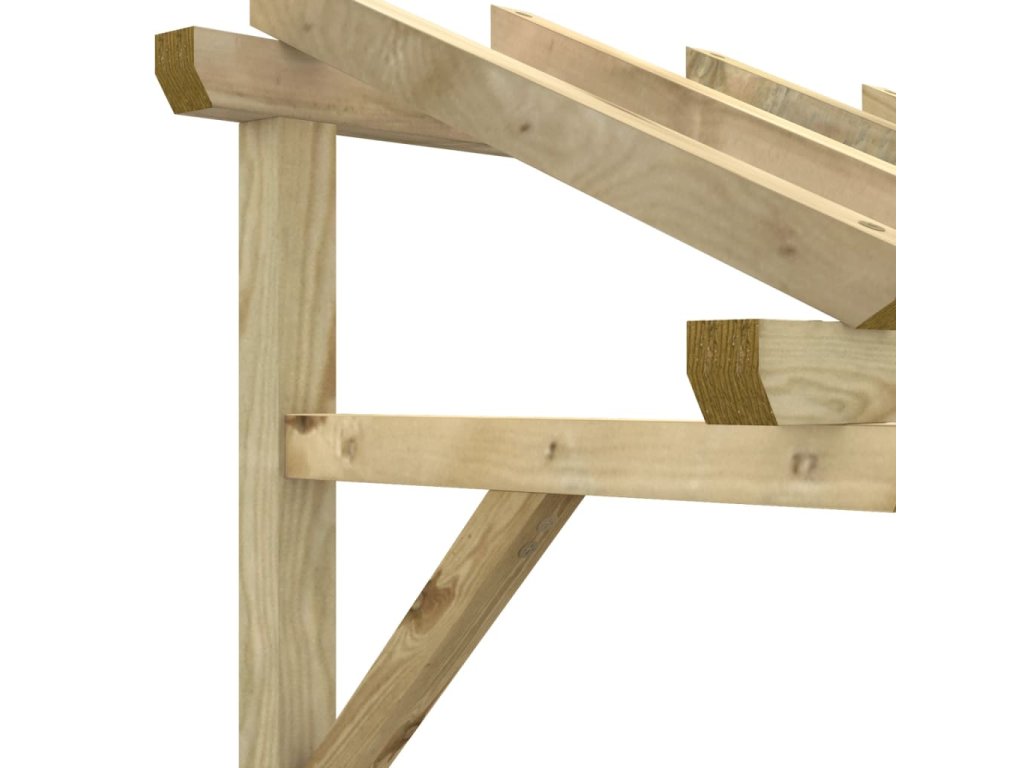 Vchodová stříška je vyrobena z masivního borového dřeva se zelenou impregnací, je tedy velmi robustní, má dlouhou životnost a nepodléhá hnilobě. Sestavení produktu je snadné. Upozorňujeme, že dřevo je přírodní produkt, a může tak vykazovat jisté nedokonalosti.