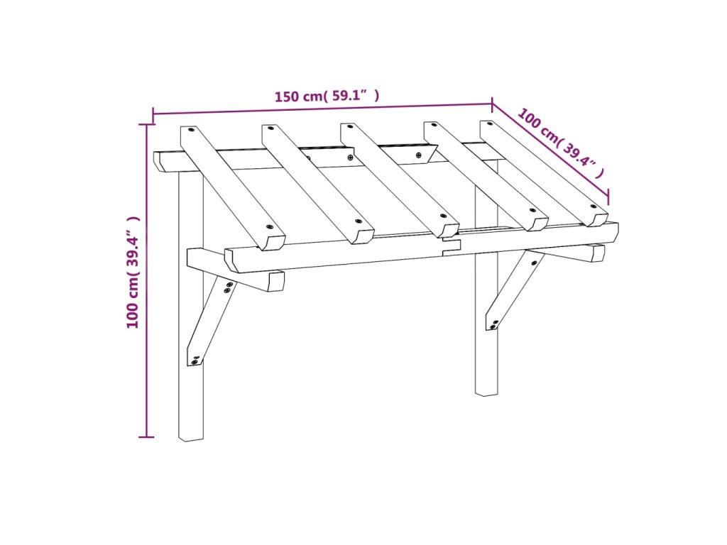 vidaXL Vchodová stříška 150 x 100 x 100 cm masivní borovice