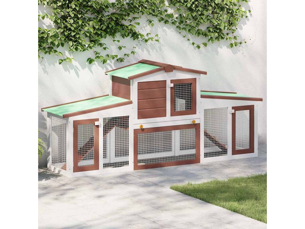 vidaXL Velká venkovní králíkárna hnědo-bílá 204 x 45 x 85 cm dřevo