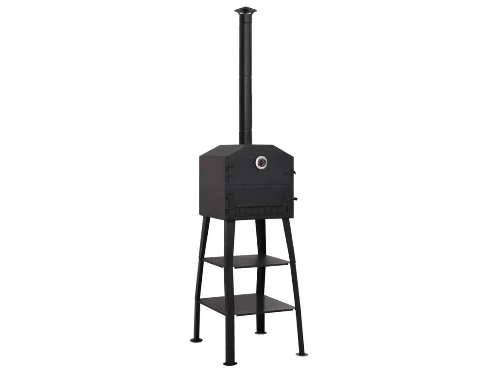 Tato samostatně stojící pec je vhodná pro všechny typy dřevěného uhlí. Rošt lze vyjmout pro rychlé a snadné čištění. Horní část je určená pro pečení. Ve spodní části jsou umístěny dvě žáruvzdorné (šamotové) cihly, které rovnoměrně rozvádí teplo do pece a mohou odolat teplotám až 1300 ?. Cihly také zaručují, že váš pokrm nebude znečištěný poletujícím popelem nebo prachem z ohně. Dvě police nacházející se ve spodní části pece jsou praktické pro uložení ochranných rukavic nebo dalších potřeb. Tato trouba je také vybavena vestavěným teploměrem.
