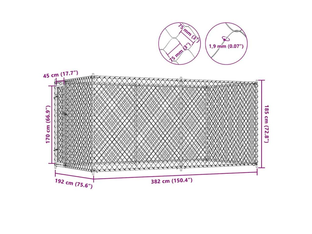 Velký psí kotec poskytne vašim psům spoustu prostoru k pohybu. Drátěné pletivo zároveň zabrání neplechám a nehodám a umožní dostatečné větrání. Pevná konstrukce z vysoce odolné pozinkované oceli zaručuje, že toho kotec hodně vydrží a bude vám sloužit dlouhá léta. Dveře s panty lze zamknout na západku, vaši pejsci tedy budou spolehlivě v bezpečí. Montáž je velmi jednoduchá.