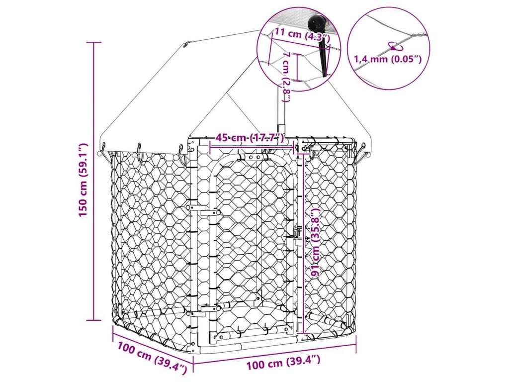Velký psí kotec poskytne vašim psům spoustu prostoru k pohybu. Pletivo po celém obvodu zároveň zabrání neplechám a nehodám a umožní dostatečné větrání. Pevná konstrukce z vysoce odolné pozinkované oceli zaručuje, že toho kotec hodně vydrží a bude vám sloužit dlouhá léta. Součástí je rovněž střecha ze 100% polyethylenu, která je žáruvzdorná a odolná vůči UV záření a poskytuje ochranu před sluncem, deštěm, sněhem a dalšími klimatickými podmínkami. Dveře s panty lze zamknout na západku pro zvýšené bezpečí vašich psů.