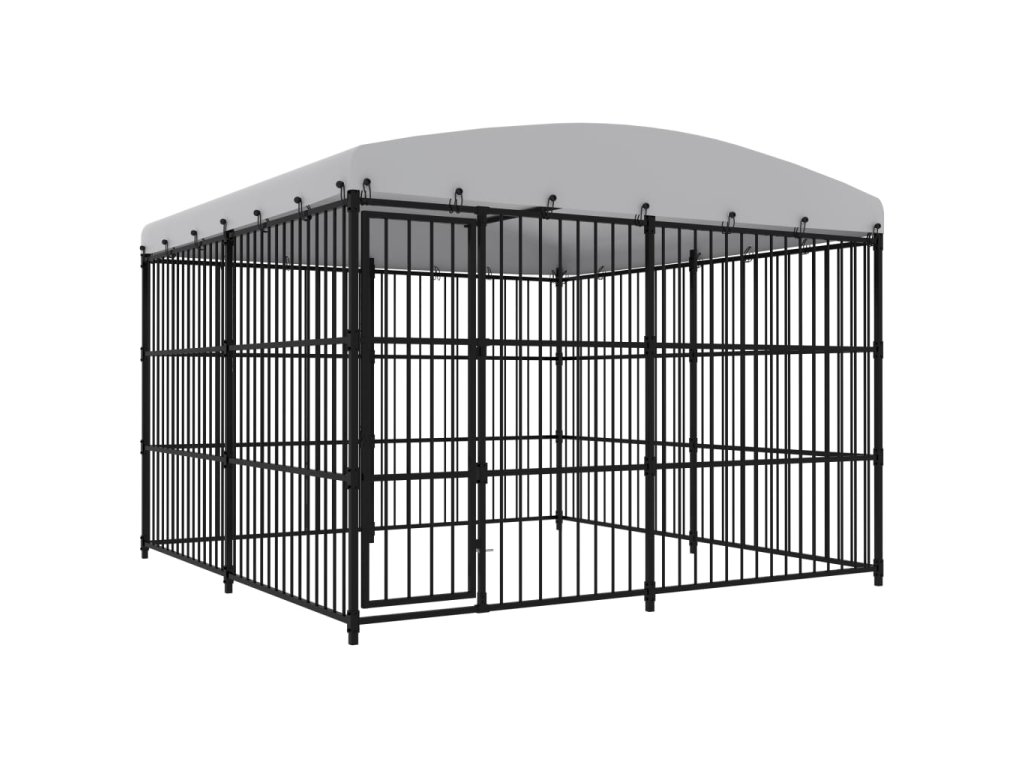 Tato všestranná a odolná psí bouda nabízí mnoho využití: hraní, cvičení, výcvik nebo prostě jen ochranu vašeho psa. Bude to perfektní herní ráj pro vaše chlupaté kamarády! Tato bouda poskytuje dostatek prostoru pro cvičení, zatímco ocelové tyčové stěny pomáhají předcházet neplechám a neočekávaným nehodám a zároveň umožňují větrání. Díky robustní ocelové konstrukci s práškovým lakováním je tato kvalitní psí bouda odolná a vyrobená pro dlouhou životnost. Součástí dodávky je vrchní stříška odolná proti povětrnostním vlivům, což poskytuje dobrou ochranu před sluncem a deštěm. Dveře na pantech mají navíc uzamykatelný západkový systém, který zajišťuje vašim psům větší bezpečnost. Tato bouda se snadno montuje.