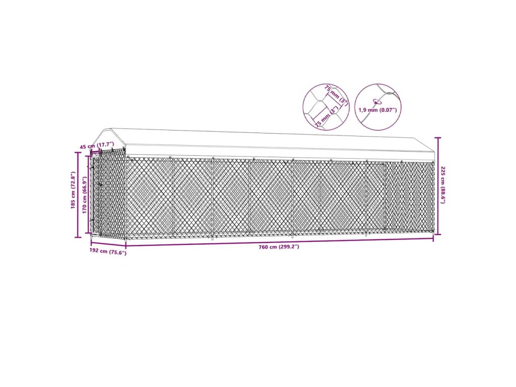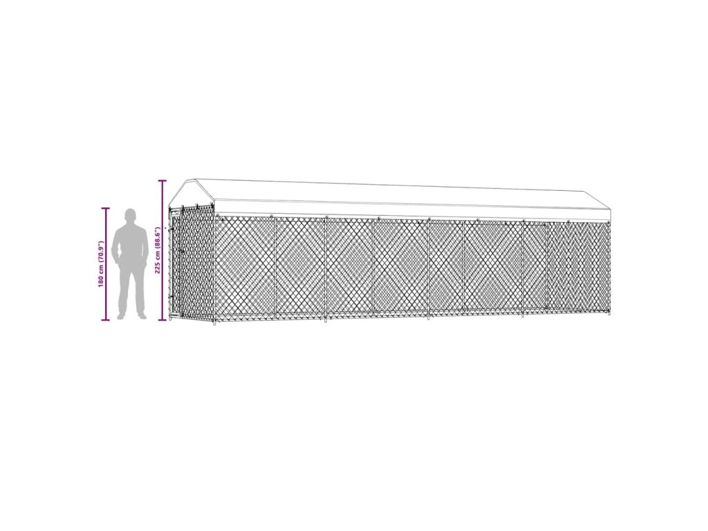 vidaXL Venkovní psí kotec se střechou 760 x 190 x 225 cm
